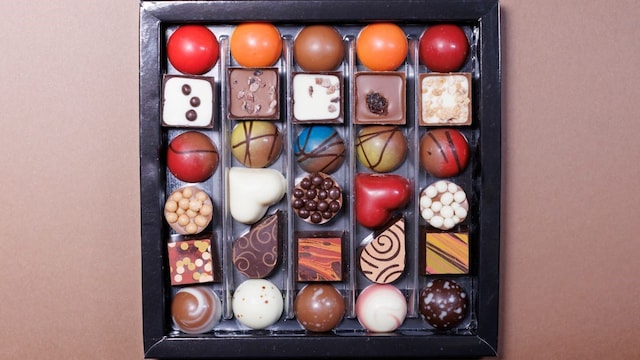 Box of classic assorted chocolates | Assorted boxes containing milk, dark and white chocolates are a classic option that is always appreciated. Perfect for sharing on Chocolate Day, these boxes offer a variety of flavors and textures. (Shutterstock Image)