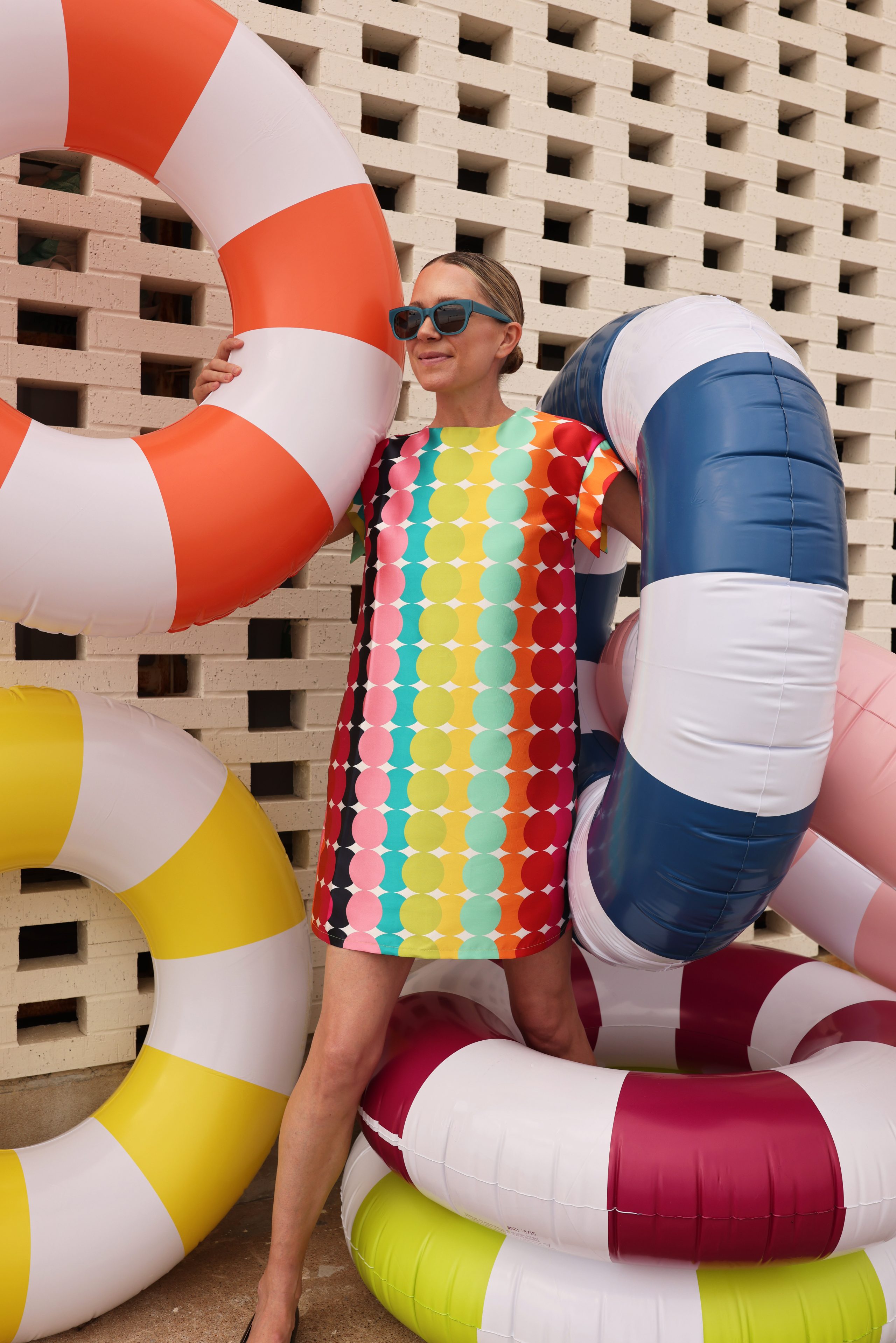 Lily Shift is another Francis Valentine classic. We updated it with a mid-scale rainbow check print as well as an exploded check print with a clear sequin overlay. The response to these dresses has been so exciting – it seems like you all want to try one of these styles!