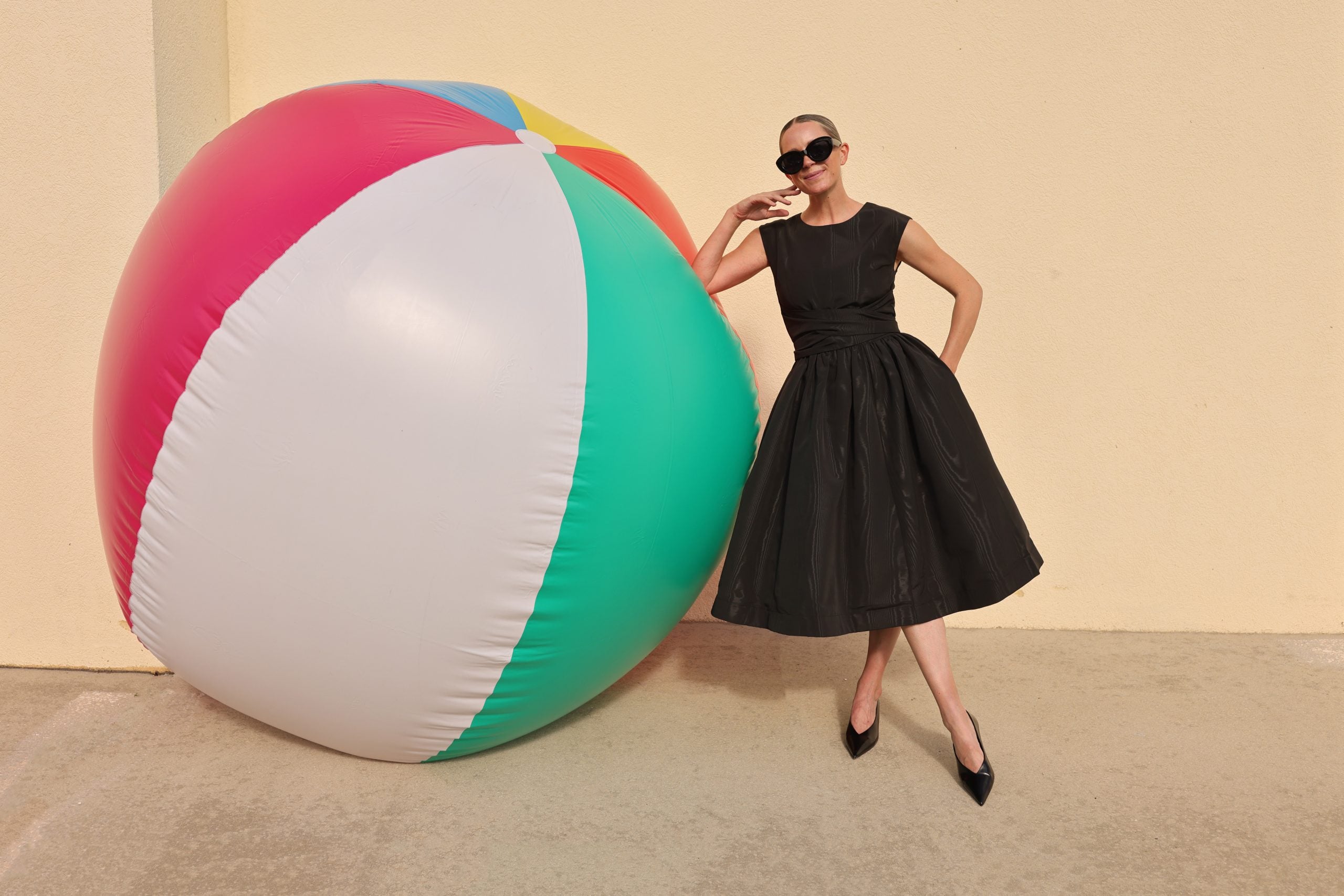 This moiré midi is probably my favorite dress in the entire collection, which is why we’ve prepared it in three colors – black, navy and pink. This is a true dress that can do it all. It looks lovely with flats and a rattan bag, but it’s also event-ready—just transform into a pair of sleek stilettos, a pillbox hat, and a vintage brooch.