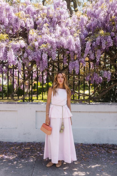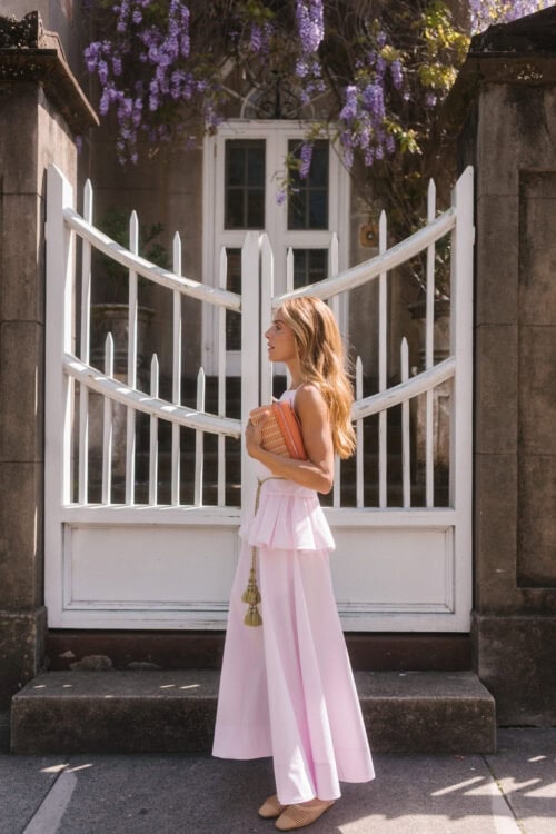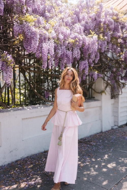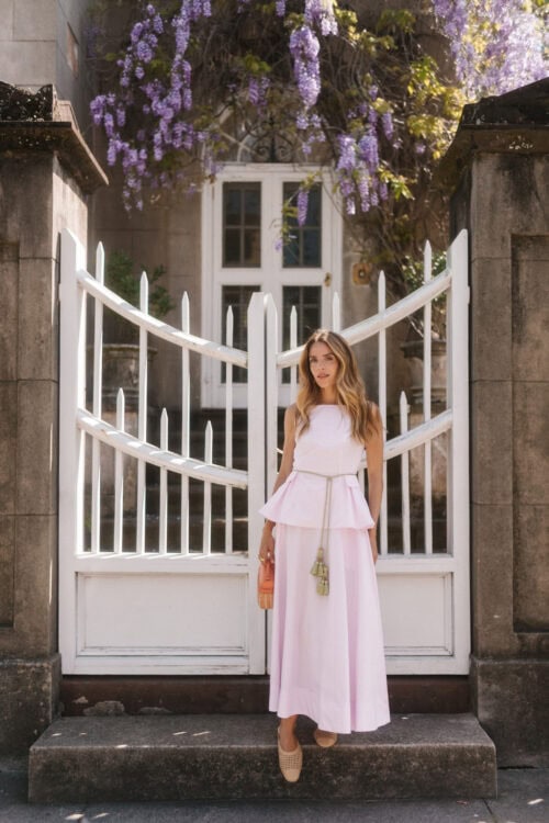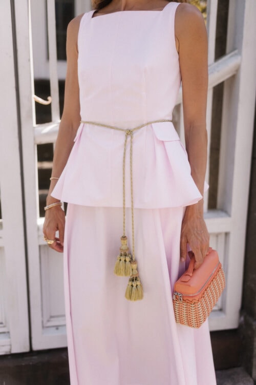There’s something about a two-piece set that makes getting dressed feel easier. This makes it hard to guess, but it still looks like you put real thought into it. The pink poplin top and skirt set stands out. It has structure through the top, a clean line through the skirt, and feels pulled together as you wear it. It also separates well – tops with denim, skirts with a simple tank – so it’s more than just a look.