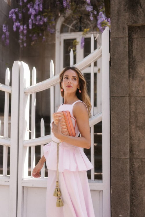Adam Lippes top and skirt, JB x Margaux shoes, Loro Piana bag (coming soon)